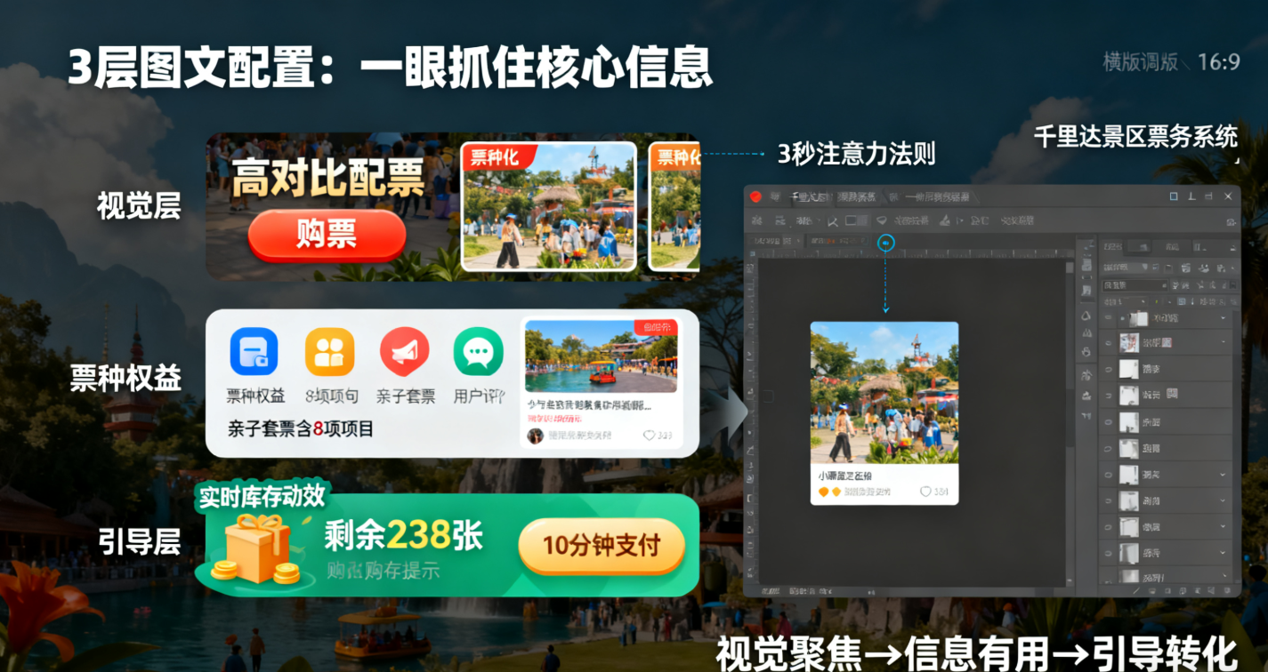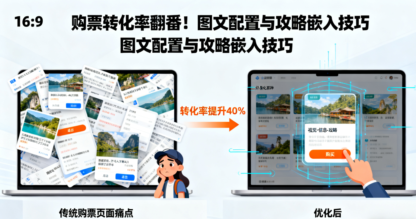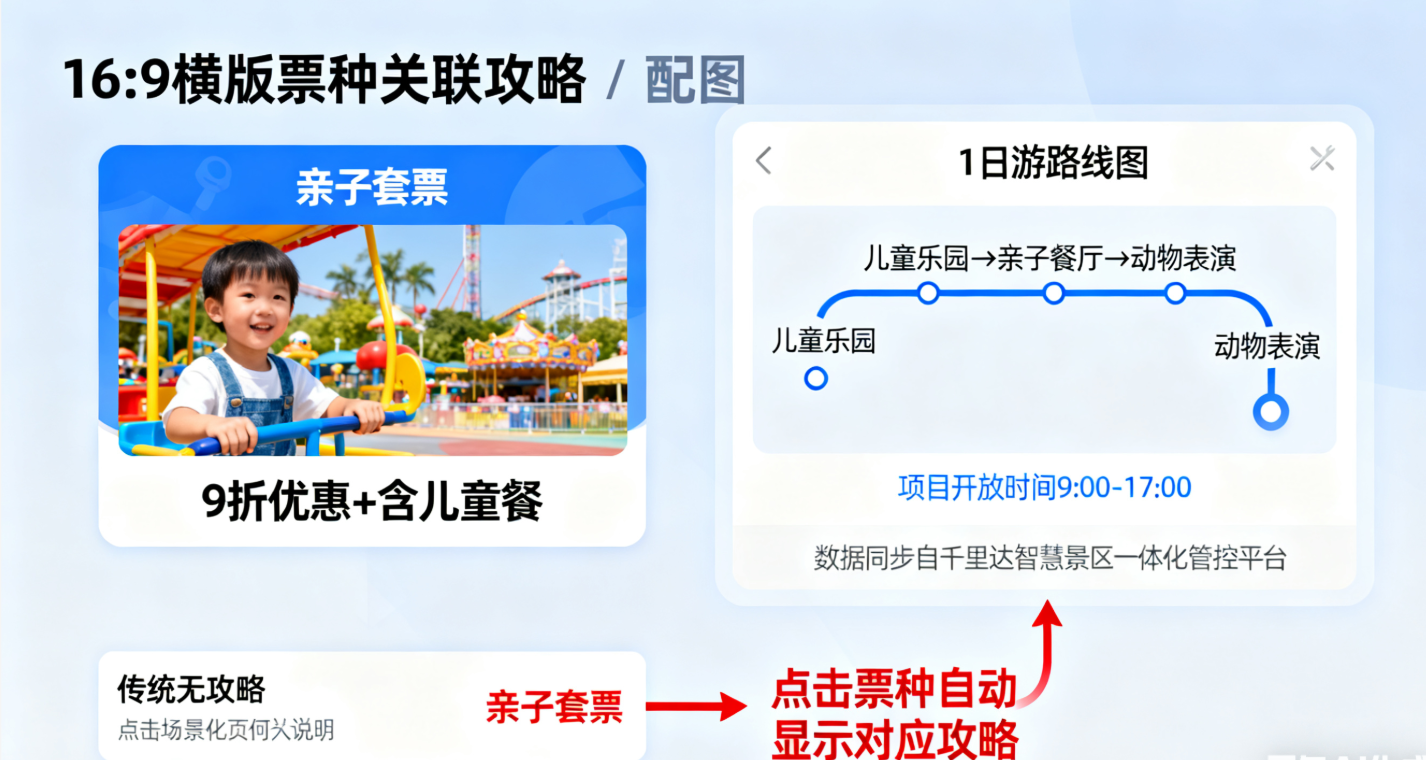 购票转化率翻番!购票页面图文配置与攻略嵌入技巧发表时间:2025-11-21 09:33 ![]() “游客打开购票页面,看半天找不到‘亲子套票’在哪,直接退出!” “页面只放了景区大门图,游客不知道有啥好玩的,犹豫着就不买了!” “攻略信息堆在最底部,没人看,游客买完票还来问‘怎么去景点’!” 购票页面是景区 “转化游客” 的关键阵地,却很多景区把它当成 “单纯的售票工具”—— 图文杂乱、信息无效、攻略缺失,导致游客 “找不到、看不懂、没兴趣”,转化率持续低迷。而千里达智慧景区通过 “千里达景区票务系统” 的图文配置功能,结合 “千里达智慧景区一体化管控平台” 的场景化攻略嵌入能力,让购票页面从 “冷冰冰的售票页” 变成 “会说话的转化利器”,平均帮助景区提升购票转化率 40%! 一、先破痛点:购票页面图文配置的 3 大常见问题很多景区的购票页面之所以转化低,根源在于陷入 “3 个误区”,而千里达景区票务系统的设计逻辑,正是从解决这些误区出发: 1. 视觉混乱:门票类型、价格、有效期、购买按钮混在一起,游客 3 秒内找不到核心信息(如 “哪个是优惠票”“怎么买”); 2. 图文无效:只放景区大门图、风景图,没有和 “购票决策” 相关的内容(如 “亲子套票包含哪些项目”“老年人适合玩哪些景点”); 3. 攻略脱节:游玩攻略要么没有,要么堆在页面最底部,游客购票时看不到,买完票又得重新查,体验割裂。 ![]() 二、核心技巧:3 层图文配置 + 3 类攻略嵌入,精准提升转化千里达景区票务系统的图文配置功能,遵循 “视觉聚焦→信息有用→攻略引导” 的逻辑,让每个图文元素都为 “转化” 服务,同时联动千里达智慧景区一体化管控平台的实时数据,确保攻略信息精准有效。 (一)3 层图文配置:让核心信息 “一眼可见”购票页面的图文不是 “越多越好”,而是要按 “优先级分层”,让游客快速获取关键信息: 1. 视觉层:3 秒抓住注意力,引导点击• 核心动作:突出 “购票入口” 用 “高对比度色彩” 设计购票按钮(如红色、橙色,与页面底色差异大),每个票种卡片右上角标注 “热门”“优惠” 等标签(如亲子套票标 “9 折优惠”,学生票标 “专属”),通过千里达景区票务系统的 “标签自定义功能”,可一键设置标签样式,无需设计; 搭配 “场景化缩略图”:票种卡片不用景区全景图,而是用对应票种的核心场景图(如亲子套票配 “孩子玩滑梯” 的图,老人票配 “景区无障碍通道” 的图),让游客一眼知道 “这张票适合我”。 • 避坑提醒:少用 “无关图文” 顶部 banner 图不超过 1 张,内容聚焦 “当前核心活动”(如 “五一非遗展演,购票送体验券”),而非单纯的风景图;页面两侧、底部不堆砌无关图标(如微信支付、支付宝图标只需在付款环节显示),避免分散注意力。 2. 信息层:用 “图文结合” 讲清 “买什么、有啥用”• 票种信息:图文拆解,消除顾虑 每个票种卡片内,除了价格、有效期,还要用 “图标 + 短句” 说明核心权益(如: ◦ 成人通票:配 “过山车 + 摩天轮 + 游船” 图标,文字标注 “含 15 项游乐项目,全天不限次”; ◦ 老年票:配 “观光车 + 休息亭” 图标,文字标注 “含全程观光车,免排队通道”); 这些图标可直接从千里达景区票务系统的 “素材库” 选择(内置 50 + 景区常用图标),也可上传景区专属图标,操作简单。 • 信任信息:用 “小图 + 短评” 建立安全感 在票种卡片下方,嵌入 “用户评价缩略图”(如 3-5 个游客实拍图 + 1 句话评价,“带娃玩了一天,项目很全”“老人票很贴心,有专门通道”),以及 “资质认证小图标”(如 “官方直营”“无理由退票”“安全认证”); 这些评价数据可自动同步千里达智慧景区一体化管控平台的 “游客评价模块”,无需手动上传,确保真实有效。 3. 引导层:用 “轻图文” 推动 “下一步动作”• 购买引导:用 “进度条 + 提示语” 减少犹豫 如 “今日剩余库存:238 张”(配库存减少动效)、“近 1 小时已有 56 人购买”(配小图标),通过千里达景区票务系统的 “实时库存同步功能”,自动显示剩余票数,制造 “稀缺感”; 购买按钮下方用小字提示 “10 分钟内完成支付,超时自动取消”,避免游客 “长时间犹豫”。 • 售后引导:用 “图标 + 短句” 消除后顾之忧 页面中部嵌入 “退票 / 改期” 说明(配 “退款图标 +‘未入园可退’”)、“入园方式” 说明(配 “二维码图标 +‘刷码直接入园,无需换票’”),这些信息用浅色小图文呈现,不抢焦点,但能减少游客 “怕麻烦” 的顾虑。 (二)3 类攻略嵌入:让游客 “买得明白,玩得放心”攻略不是 “额外内容”,而是 “促进购票的关键理由”。千里达智慧景区一体化管控平台可联动票务、客流、项目开放数据,将攻略 “精准嵌入” 购票页面的关键位置,让游客在 “决定买票前” 就知道 “怎么玩、玩什么”: 1. 票种关联攻略:买哪类票,看哪类攻略• 逻辑:游客点击某类票种,自动弹出对应攻略 如点击 “亲子套票”,右侧弹出 “亲子游玩攻略”(配 “1 日游路线图”:上午玩儿童乐园→中午去亲子餐厅→下午看动物表演,每个环节标 “含在套票内” 或 “需额外付费”); 攻略中的 “项目开放时间”(如 “儿童乐园 9:00-17:00 开放”)自动同步千里达智慧景区一体化管控平台的 “项目管理模块”,若项目临时维修,攻略会实时标注 “今日维修,暂不开放”,避免误导。 2. 