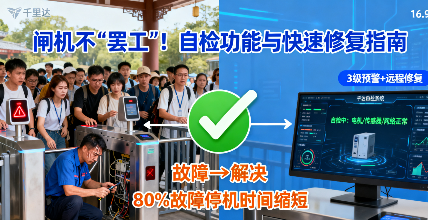 闸机不 “罢工”!检票设备自检功能与故障快速修复指南发表时间:2025-12-04 09:30 ![]() “游客排成长队,闸机突然卡住打不开,现场没人会修,只能临时关闭通道!” “闸机扫码没反应,自检提示‘数据异常’,却查不清是系统问题还是硬件故障!” “故障修复花了 1 小时,游客投诉不断,还导致后续客流积压,运营乱成一团!” 检票设备(闸机)是景区入园核验的 “关键关口”,其稳定性直接影响游客体验与运营效率。但很多景区因设备缺乏完善的自检功能、故障预警不及时、修复流程不清晰,导致小故障演变成大问题。而千里达智慧景区依托 “千里达景区票务系统” 的设备联动功能,结合 “千里达智慧景区一体化管控平台” 的远程运维能力,为检票设备打造 “全流程自检 + 精准预警 + 快速修复” 的保障体系,让闸机故障停机时间缩短 80%,入园核验效率提升 60%! 一、先明痛点:景区检票设备故障的 3 大核心难题景区闸机在高频使用(日均核验数千人次)、复杂环境(户外风雨、灰尘)下,易出现各类故障,传统运维模式面临三大难题: 1. 故障无预警:闸机突然 “罢工”,没有提前提示,运营者毫无准备,游客瞬间拥堵; 2. 排查无方向:故障后仅显示 “设备异常”,缺乏具体故障点提示(如 “传感器故障”“网络断开”),运维人员需逐部件排查,耗时费力; 3. 修复不及时:缺乏标准化修复流程,且无法远程诊断,需等待技术人员到场,故障修复时间动辄 1-2 小时,严重影响运营。 千里达景区票务系统的自检功能设计,正是针对这些痛点,构建 “主动自检 + 精准预警 + 远程协助” 的运维体系,从根源降低故障影响。 二、核心功能:检票设备自检的 “3 大模块”,提前规避故障检票设备的自检功能不是 “简单的通电检查”,而是覆盖 “硬件、软件、数据” 全维度的智能诊断。千里达景区票务系统深度适配闸机设备,内置 3 大自检模块,确保故障早发现、早处理: 1. 硬件自检模块:实时监测核心部件,杜绝 “突然罢工”硬件是闸机运行的基础,自检模块聚焦 “易损耗、高故障” 部件,实时监测运行状态,提前预警潜在问题: